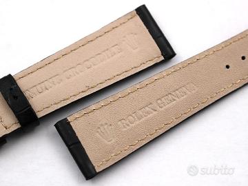 Cinturino Rolex Cinturino Vera Pelle di coccodrillo Colore Nero Opaco Cuciture in tinta Base in pelle riportante il marchio "ROLEX GENEVA" Semi imbottito Prodotto artigianale realizzato a mano Curato nei minimi Dettagli Adatto a chiusure ardiglione (fibbia) Elegante Unisex Nuovo Misure: Ansa: 20mm Fibbia: 16mm Lunghezza cinturino: 7,5 x 11,5 cm