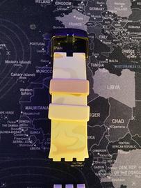 Vendo n.1 Cinturino Swatch SANDSTORM SURC102 originale vintage per orologi Swatch Digital, ottime condizioni come da foto, normali segni d'uso plastica non irrigidita ma ancora elastica, viene venduto per completare un oggetto a scopo collezionistico, indossarlo è responsabilità dell'acquirente potrebbe rompersi con l'uso quotidiano data l'età