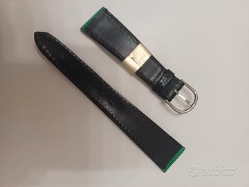 cinturino vintage nuovo NOS in pelle verde con superficie tipo lucertola o rettile ed inserti neri adatto ad orologi tipo Bulova Accutron Spaceview o eleganti tipo Omega Seamaster.