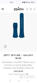 Vendo per errato acquisto cinturino originale in caucciù Zenith Galaxy Blue ref.27.00.2018.I201(prezzo in negozio 395€)dimensioni 20/18mm con attacco rapido per orologi modelli Defy Skyline e Defy Skyline Skeleton misura grande.Il cinturino è nuovo mai montato. Non compatibile con Omega, Breitling,Tudor,Rolex.