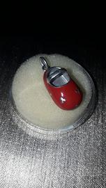 VENDO IN BLOCCO per 20 EURO: Scarpina in argento (punzonata sul retro) smaltata in rosso. E 3 ciondoli smaltati su acciaio a forma di fragola, borsetta e ranocchietta. NUOVI.