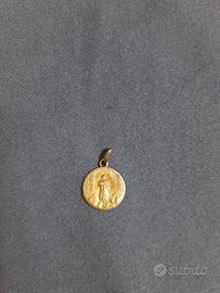 Vendo tre ciondoli, un paio di orecchini e una spilla dorati. NON sono in oro. Il lotto comprende: una stella, perfetta; una medaglietta, danneggiata, con l'icona di San Francesco di Paola; una medaglietta con icona mariana e iniziali (AB) incise sul retro; un paio di orecchini tondi con chiusura a farfallina e una spilla a forma di cuore. Disponibilità immediata.