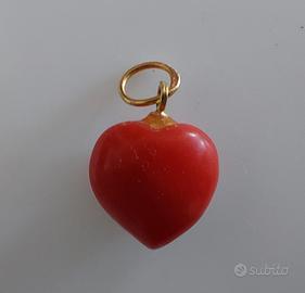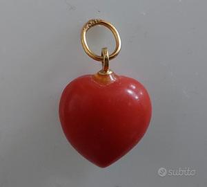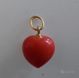 Ciondolo a cuore in corallo rosso e oro giallo 18K