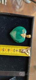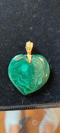 grande ciondolo a forma di cuore in malachite e oro giallo fatto artigianalmente e comprato nella gioielleria Mondello a Roma mai indossato