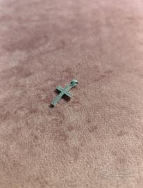 Elegante ciondolo a forma di croce, impreziosito da piccole pietre scintillanti. - Design a croce. - Dettagli luminosi.