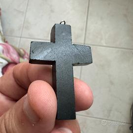 La dimensione del ciondolo a forma di croce è di circa 3cm x 5cm e pesa circa 20 grammi circa.