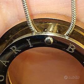 Ciondolo Bulgari similare doppio anello in acciaio inox e acciaio galvanizzato oro.