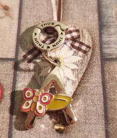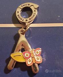 in metallo argentato, lettera A decorata con la farfalla smaltata (sinonimo di leggerezza, rinascita e gioia) simbolo del famoso marchio Thun, il gancio riporta inciso il marchio più volte. Ideato per personalizzare bracciali, collane o portachiavi. NUOVO, completo di CERTIFICATO DI AUTENTICITÀ, SCATOLA E CARTA REGALO. Perfetto per essere donato.