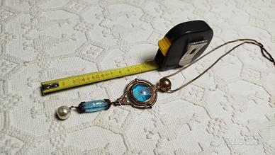Ciondolo con collana e struttura portante in bronzo arricchito da due opali incastonate e con terminale in perla barocca - collana a «squama di serpente» - mai utilizzato