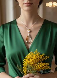 La montatura del ciondolo è realizzato con la tecnica di intreccio wire.