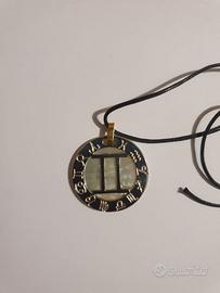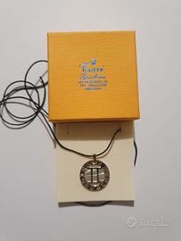 Ciondolo con simbolo zodiacale dei Gemelli, metallo e madreperla, scatolo originale.
