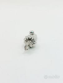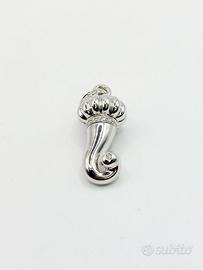 Ciondolo cornetto in oro bianco 18 KT ( 750 ‰ ) di grammi 13.60 impreziosito da diamanti naturali taglio brillante per complessivi ct. 0.25, firmato CHANTECLER.