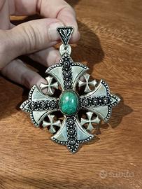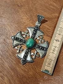 Ciondolo Croce di Gerusalemme Argento 800 Vintage