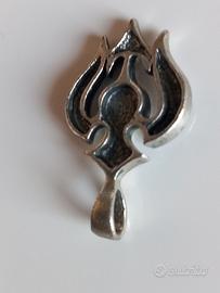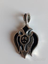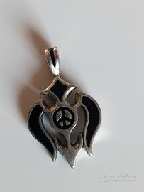 Pendente con design a croce e simbolo della pace. - Dettagli in smalto nero. - Finitura in metallo argentato.