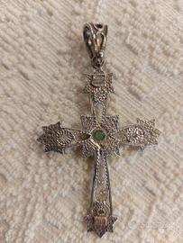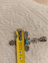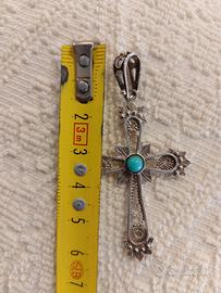 CIONDOLO CROCE FILIGRANA PASTA DI TURCHESE ARGENTO