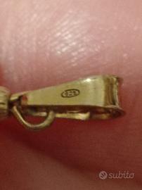 Ciondolo a forma di cuore in ambra e con contro maglia in argento dorato 925. Anni'80. La dimensione è minore di 1 cm.