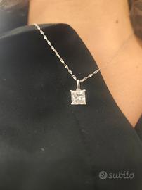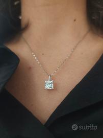 splendido pendente in diamante Lab grown da 2,13 ct e oro bianco 14k. possiede certificato igi Caratteristiche del diamante: Peso: 2.13 carati Colore: F (bianco) Purezza: VS1 (molto alta, quasi privo di inclusioni visibili) Taglio: Princess Lucidatura: Excellent Simmetria: Excellent Fluorescenza: Nessuna Tipo: CVD – Type IIa (alta qualità) 📜 Certificazione: Certificato ufficiale IGI (International Gemological Institute) Numero report: LG728579589 Incisione laser presente sulla pietra 💍 Montatura: Oro bianco 14k Design elegante e moderno, perfetto come punto luce ✨ Condizioni: Nuovo Completo di certificato originale 🎁 Ideale come regalo o per uso personale, con grande presenza visiva grazie alla caratura importante.
