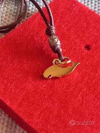 bellissimo ciondolo a forma balena in oro 18k fuori produzione cordoncino e Avellino in argento nella sua scatola originale con busta dodo rossa originale