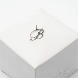 Ciondolo iniziale in oro bianco 18 kt grammi 0,5 raffigurante la “B” in corsivo. La lavorazione è lucida e misura cm. 2,2 compreso l’ anellino. Prodotto made in Italy munito di marchio di fabbrica come da legge e completo di confezione e certificato di qualità rilasciato dalla Gioielleria.