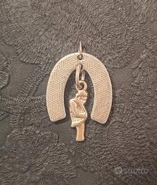 Ciondolo a forma di ferro di cavalloe Gobbo portafortuna.