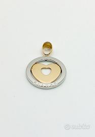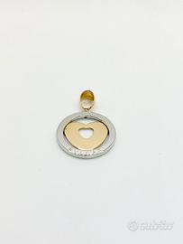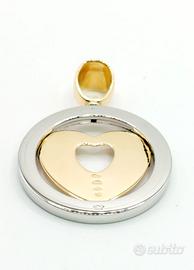 Ciondolo in acciaio con cuore in oro giallo 18 kt ( 750 ‰ ) peso complessivo di grammi 12, scritta Bvlgari.
