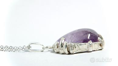Materiale: argento 925 Misure:3.5x2 cm circa Pietra; Ametista naturale taglio a goccia cabochon Tecnica; Fusione a cera persa, fatto a mano É un pezzo unico fatto da me con cura NB: la catena non e inclusa