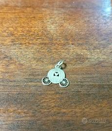 Piccolo ciondolo-charm in argento a forma di Carrozza di Cenerentola marca Rue des Mille.Logo marca inciso sotto il cuoricino.Usato pochissimo,perfetto.Non ha il simbolo dell'argento ma la marca realizza esclusivamente in argento.