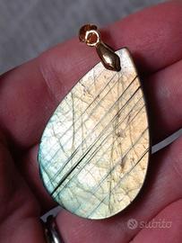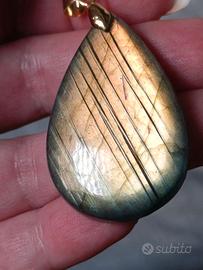 Ciondolo in labradorite Sunset a goccia dorata