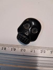 ciondolo in onice con figura di teschio .gia munito di foro per montarlo con facilità