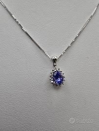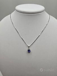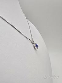 Collana con ciondolo in Oro Bianco 18 Kt, Tanzanite 0.39 Ct e 12 Diamanti pavè