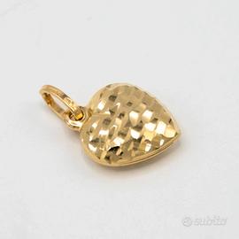 Ciondolo in oro giallo 18 kt grammi 1 a forma di cuore. La lavorazione è scatolata e brillante. Le dimensioni sono di cm. 2 compreso l’ anellino. Prodotto made in Italy munito di marchio di fabbrica come da legge e completo di confezione e certificato di qualità rilasciato dalla Gioielleria.