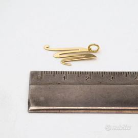 Ciondolo in oro giallo 18 kt grammi 0,6 iniziale M . La lavorazione è lucida e misura cm. 2,4 compreso l’ anellino. Prodotto made in Italy munito di marchio di fabbrica come da legge e completo di confezione e certificato di qualità rilasciato dalla Gioielleria.