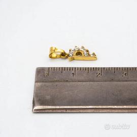 Ciondolo iniziale in oro giallo 18 kt grammi 1,1 con zirconi di colore bianco raffigurante la “P”. Il ciondolo misura cm. 1,8 compreso l’ anellino. Prodotto made in Italy munito di marchio di fabbrica come da legge e completo di confezione e certificato di qualità rilasciato dalla Gioielleria.