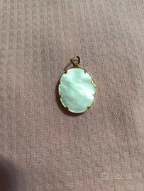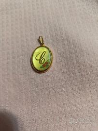 bel ciondolo vintage in madreperla con lettere ,,C,, incastonato in oro 750 cm 2,3x1,8 in ottime condizioni