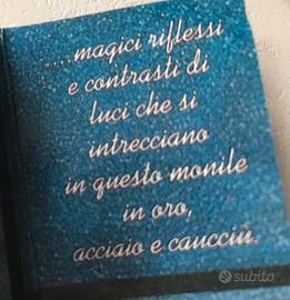 Ciondolo in acciaio con inserti in oro e cordino in caucciù come da foto. Usato pochissimo. Conservato nella sua confezione originale