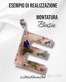 Alla cifra dell'annuncio di 11€ è compreso n.1 ciondolo Modello Lettera, realizzato in resina trasparente con l'immersione di fiori veri, con montatura basic.