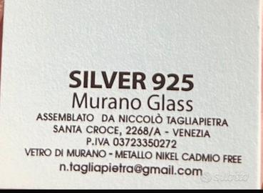 Collana con ciondolo vetro Murano e argento. Nuovo, mai indossato! Con scatolina e certificato di garanzia.