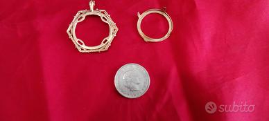 ciondolo oro 14 kt grammi 4. bollato Vicenza ,è stato fatto per inserire mezza sterlina in oro o altra moneta disegno esagonale cesellato cm 2.05 il cerchietto ha 4 graffette per chiusura..spedizione tracciabile tramite subito . tutte le mie vendite sono rivolte principalmente a privati quindi ottime occasioni d acquisto , no venditori .