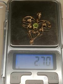 Elegante ciondolo a forma di cuore, con pietre incastonate, oro 9k (375/1000),peso 2,70 Grammi.
