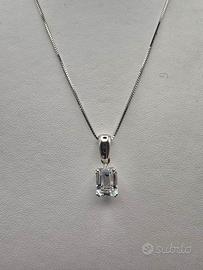 Collana con ciondolo Oro Bianco 18 Kt e Acquamarina 2.00 Ct