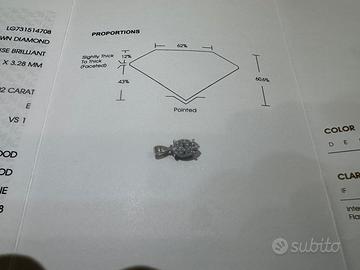 Ciondolo-18 carati Oro Bianco-1.02ct. tw. Diamante Certificazione IGI (Descrizione su Certificato) NO PERDITEMPO