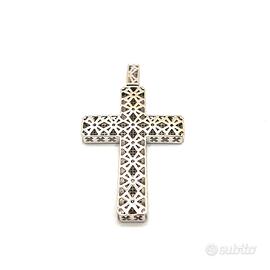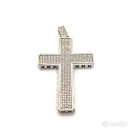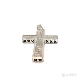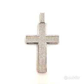 Ciondolo croce realizzata in oro bianco 18kt (750) con diamanti naturali
