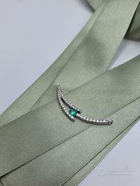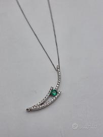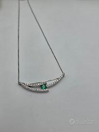 Bellissimo ciondolo realizzato artigianalmente in oro bianco massiccio 18 carati con smeraldo centrale color verde trasparente da 0.25 ct e 32 diamanti naturali taglio rotondo brillante di totale caratura 0.30 ct, Peso 4,41 grammi. Certificato gemmologico. Possibilità di catenina a parte. consegna garantita 24/48 ore ● fatturabile ● garanzia oro e autenticità pagamento ● Bonifico ● PayPal ● A mano ● Contrassegno ● Tutto Subito contattaci al nostro servizio Mostra numero o direttamente in negozio al Mostra numero visita le nostre pagine sociali Spazio Oro Arona su Facebook e Gold_atelier 20 su IG il nostro sito e-commerce www.goldatelier.it