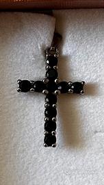 Ciondolo a forma di croce con pietre nere, in argento 925 con garanzia, gioielleria Oro Fino✨