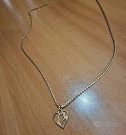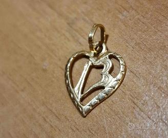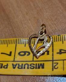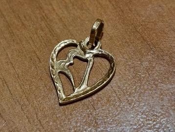 Vendo ciondolo pendente piccolo, a forma di cuore inciso, gioiello artigianale fabricato a mano in oro giallo 18 kt 750%