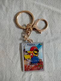 Questo ciondolo in acrilico raffigura Pikachu in versione Mario, con stampa fronte/retro a colori e dimensioni compatte (3,4 x 5,2 cm).