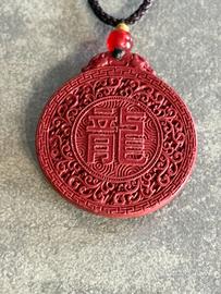 Ciondolo portafortuna cinese in cinabro rosso
