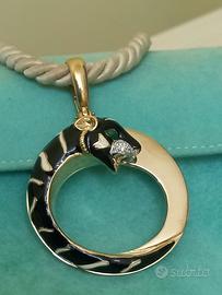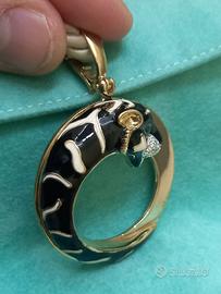 Ciondolo tigre smaltato in bianco e nero e realizzato interamente in argento 925 con cubic zirconie e placcato oro 18 Kt.
