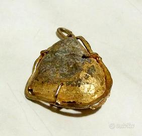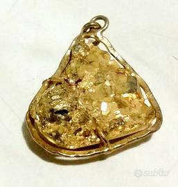 Ciondolo triangolare in pirite naturale gialla con montatura a cestello