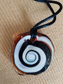 Ciondolo in vetro di murano, con laccetto di cm. 20, colori nero oro marrone, nessun segno di usura. Consegna a mano zone vicine